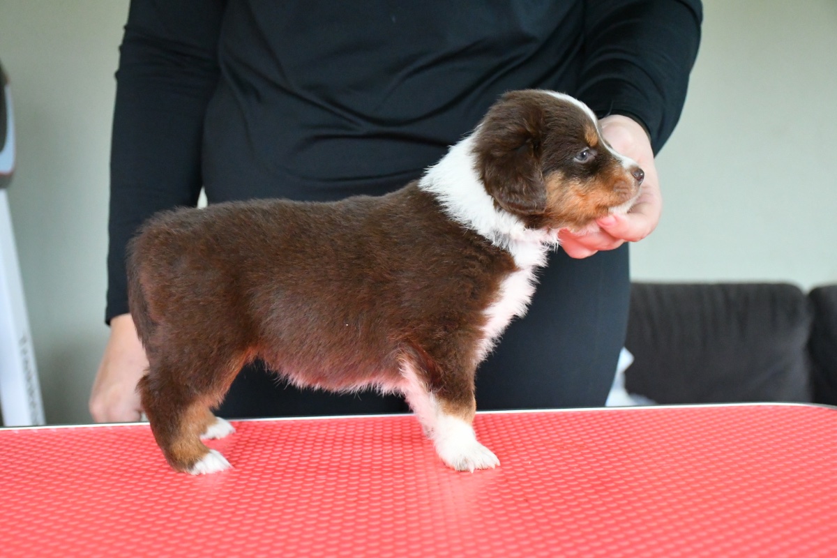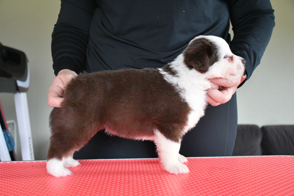 Den 17/8-2025 föddes vår andra MAS kull efter Olga x Loco och temat vi har valt är just namn relaterade till choklad eftersom Olgas stamtavlenamn är noblesse. Det blev 9 pigga valpar.